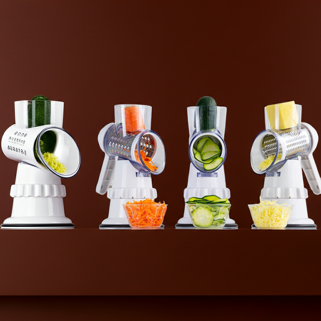 The round chopper design helps you process vegetables like potatoes, carrots, cucumbers, and cheese efficiently. Its sharp blades ensure smooth cutting while the manual operation provides safe and controlled use in any kitchen. This compact kitchen gadget is easy to assemble, clean, and store, making it ideal for everyday cooking.